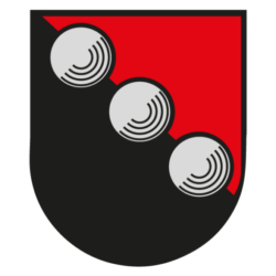Von Rot und Schwrz schräggeteilt, auf der Teilungslinie drei silberne Ballen hintereinander.